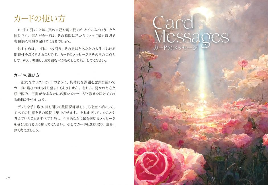 一枚一枚のカードには、魂の目覚めを促すメッセージと、日々の生活に活かせる実践的なアドバイスが込められています。