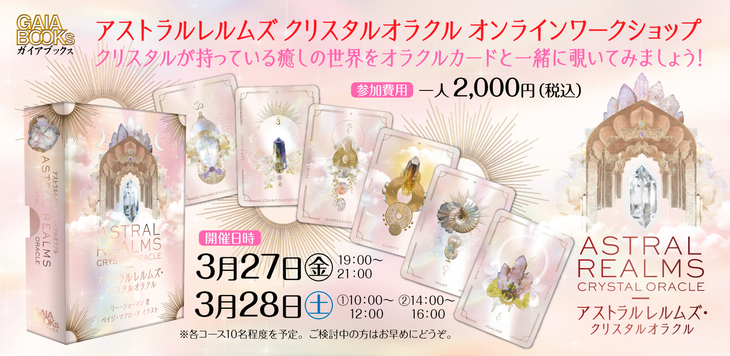 クリスタルが持っている癒しの世界をオラクルカードと一緒に覗いてみましょう!デザインが気に入って『アストラルレルムズ・クリスタルオラクル』を購入したものの、実際どう使ったらよいのか悩んでいる方お待たせいたしました。このワークショップを通じ、一緒に楽しくクリスタルやオラクルカードに関する知見を広げましょう!※初心者向けの入門編となりますので、どなたでも気軽に参加できます。