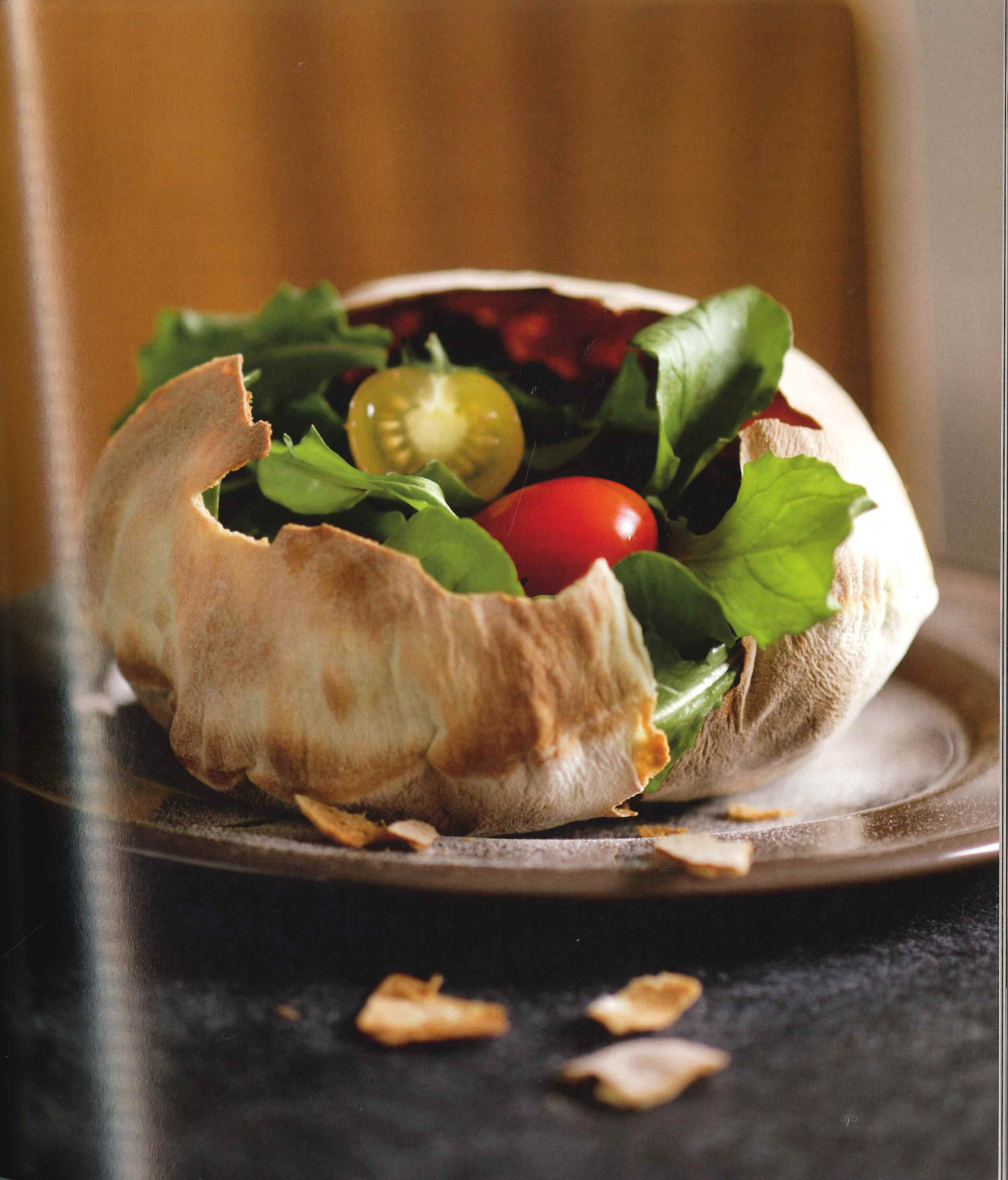 たとえば、下の写真は白い生地で作った「パフボール」。パンの上部をゆで卵みたいに叩いて割ると、中からサラダが出てくる仕組み♪
